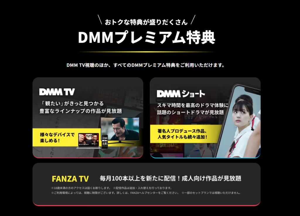 | 対象プラン | ※公式サイトで確認(現行ではDMMプレミアムの無料体験が中心) |